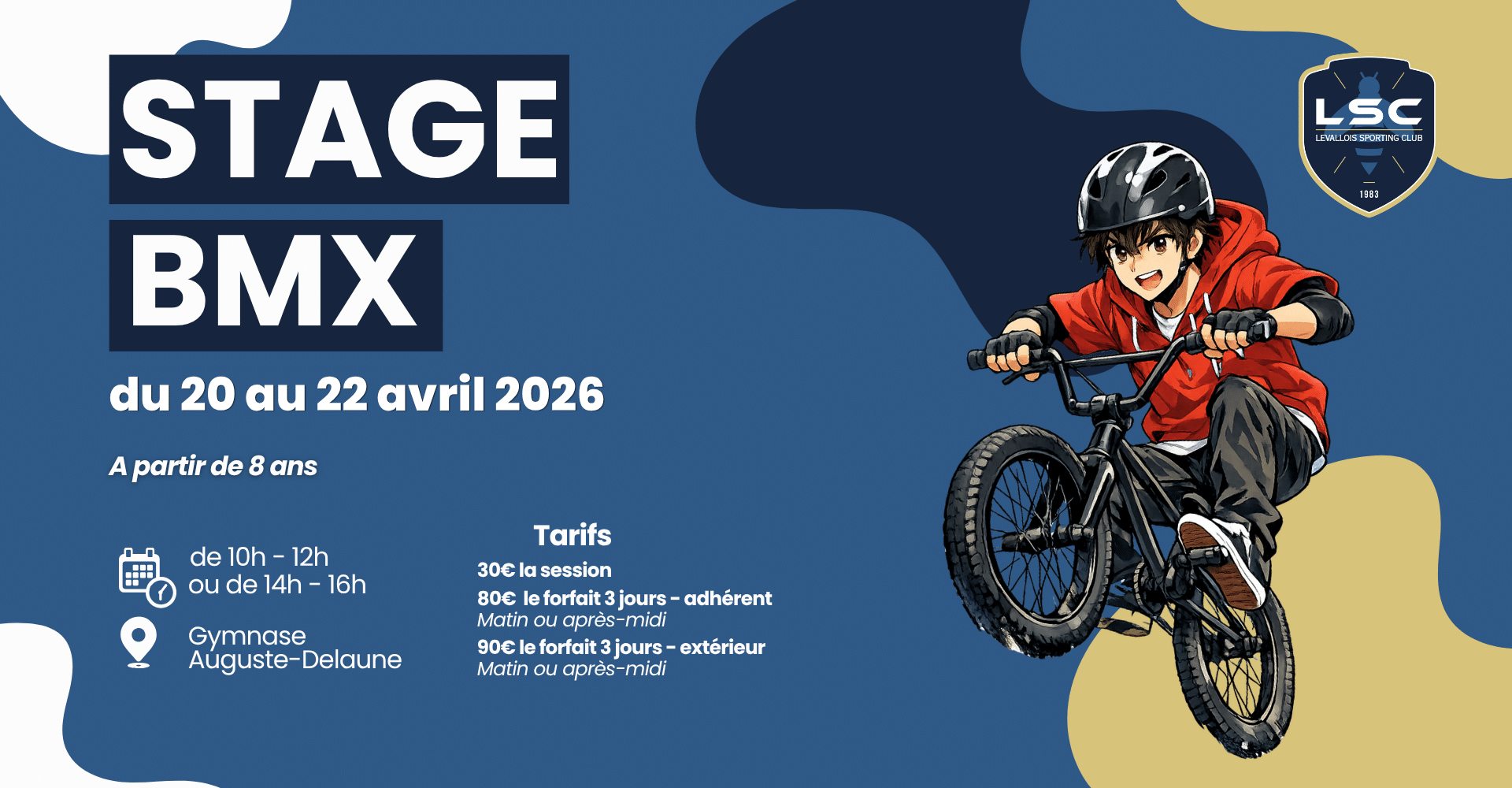 La section LSC Natation propose, durant les vacances de printemps, des stages de cours de BMX du lundi 20 au mercredi 22 avril.