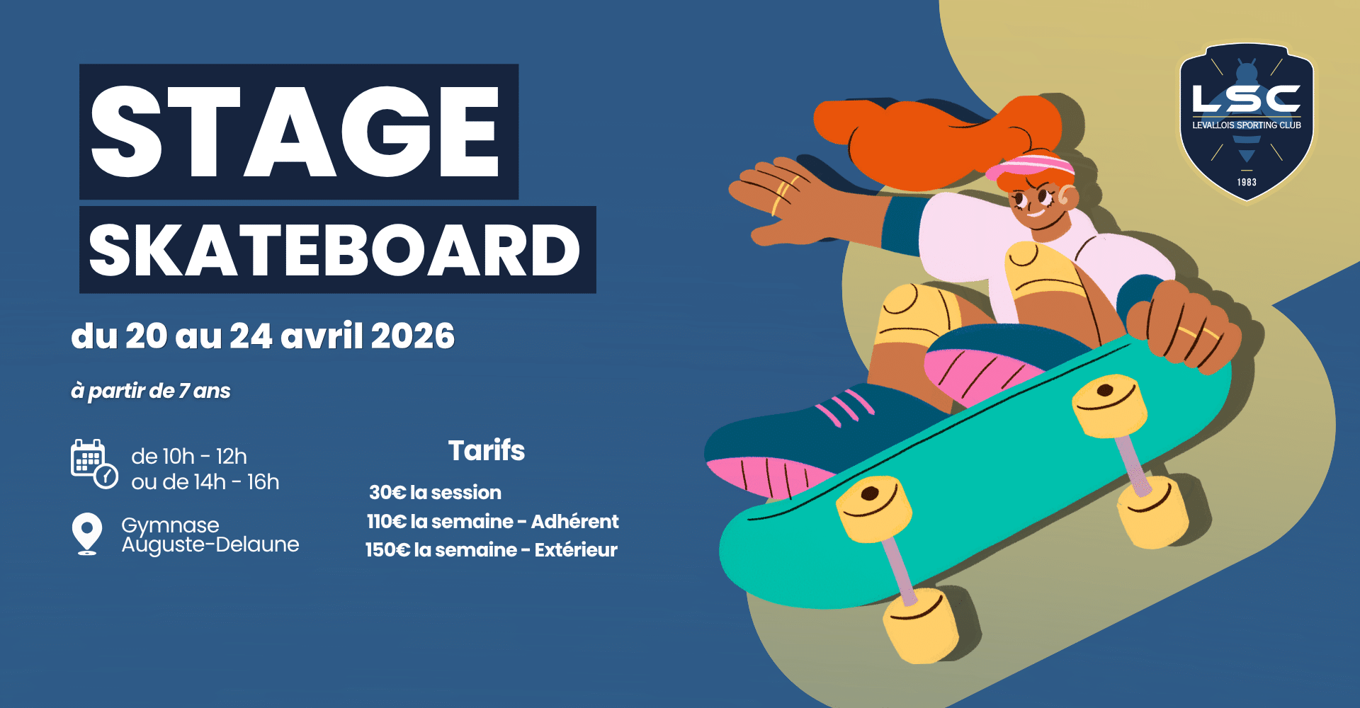 La section LSC Nouveaux Sports propose, durant les vacances de printemps, des stages de cours de skateboard du lundi 20 au vendredi 24 avril.