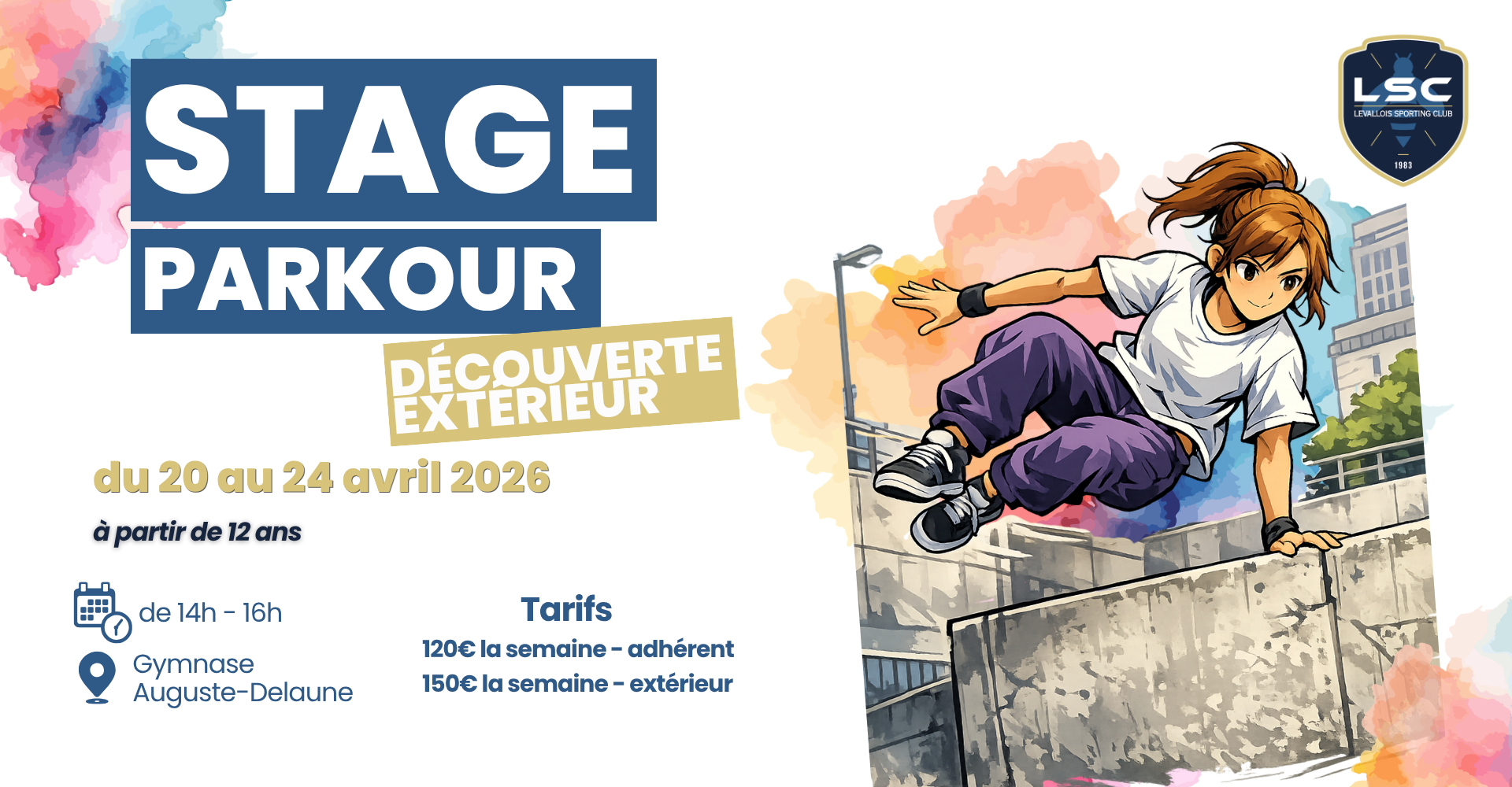 La section LSC Nouveaux Sports propose, durant les vacances de printemps, des stages de parkour extérieur du lundi 20 au vendredi 24 avril.